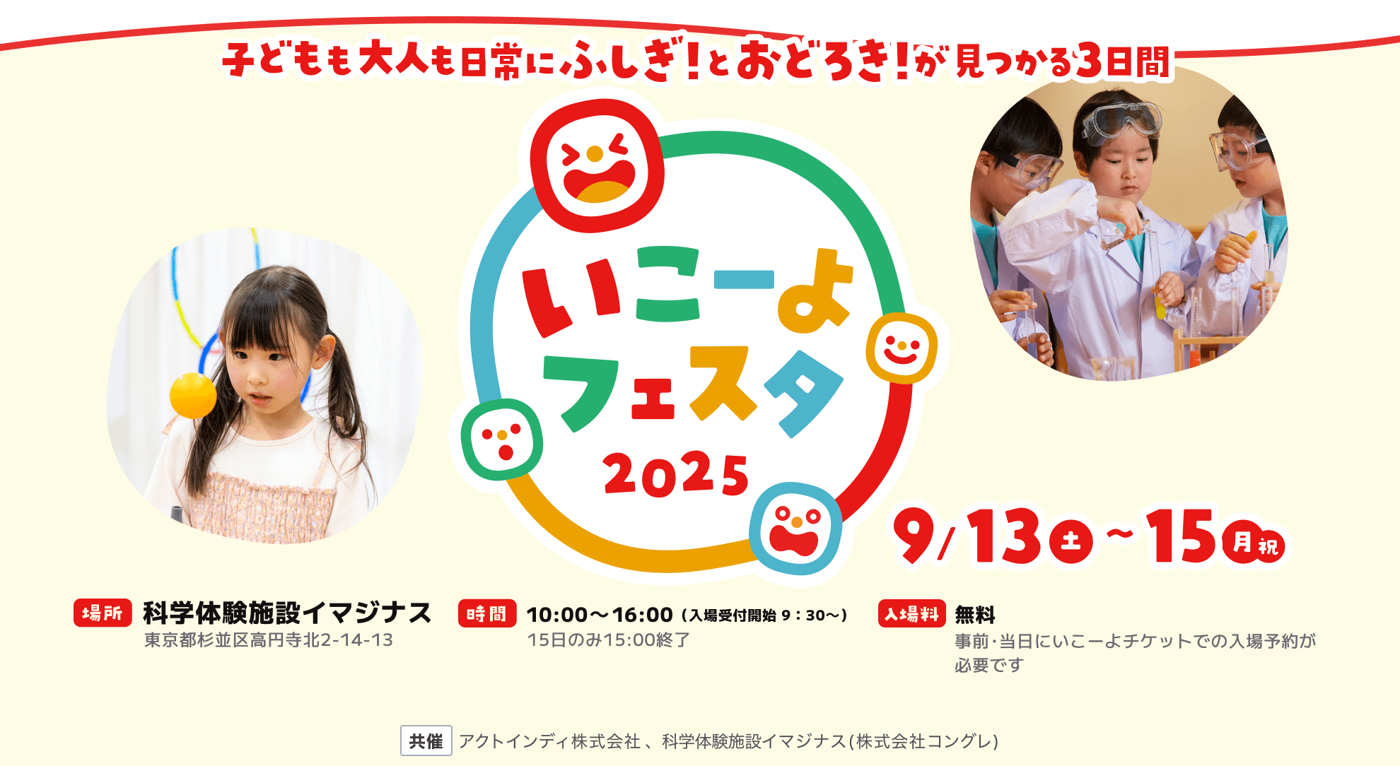 2025年9月13日(土)~15日(祝)に科学体験施設イマジナスにて実施する『いこーよフェスタ2025』(アクトインディ株式会社)にハローファミリーが出展します。